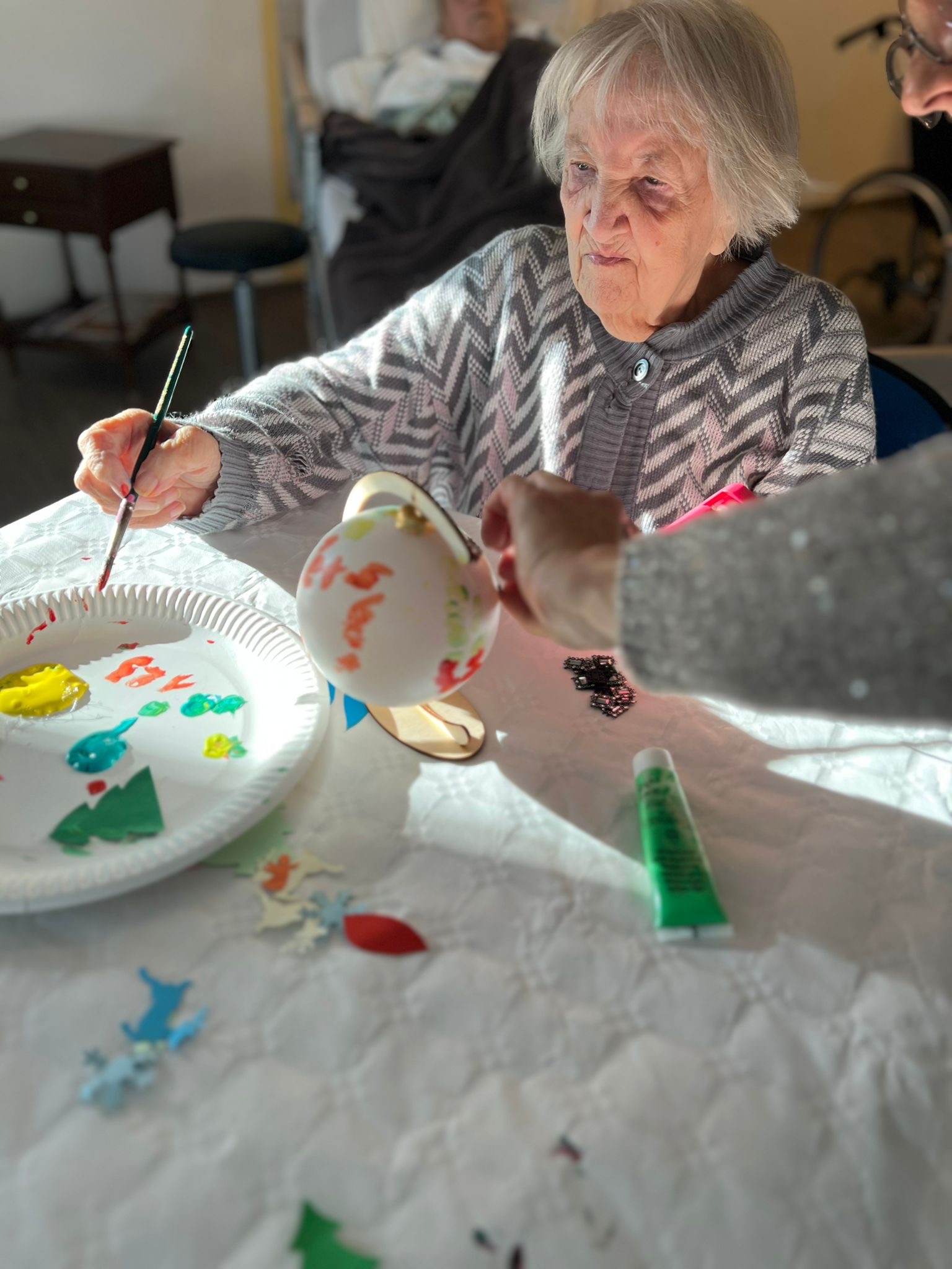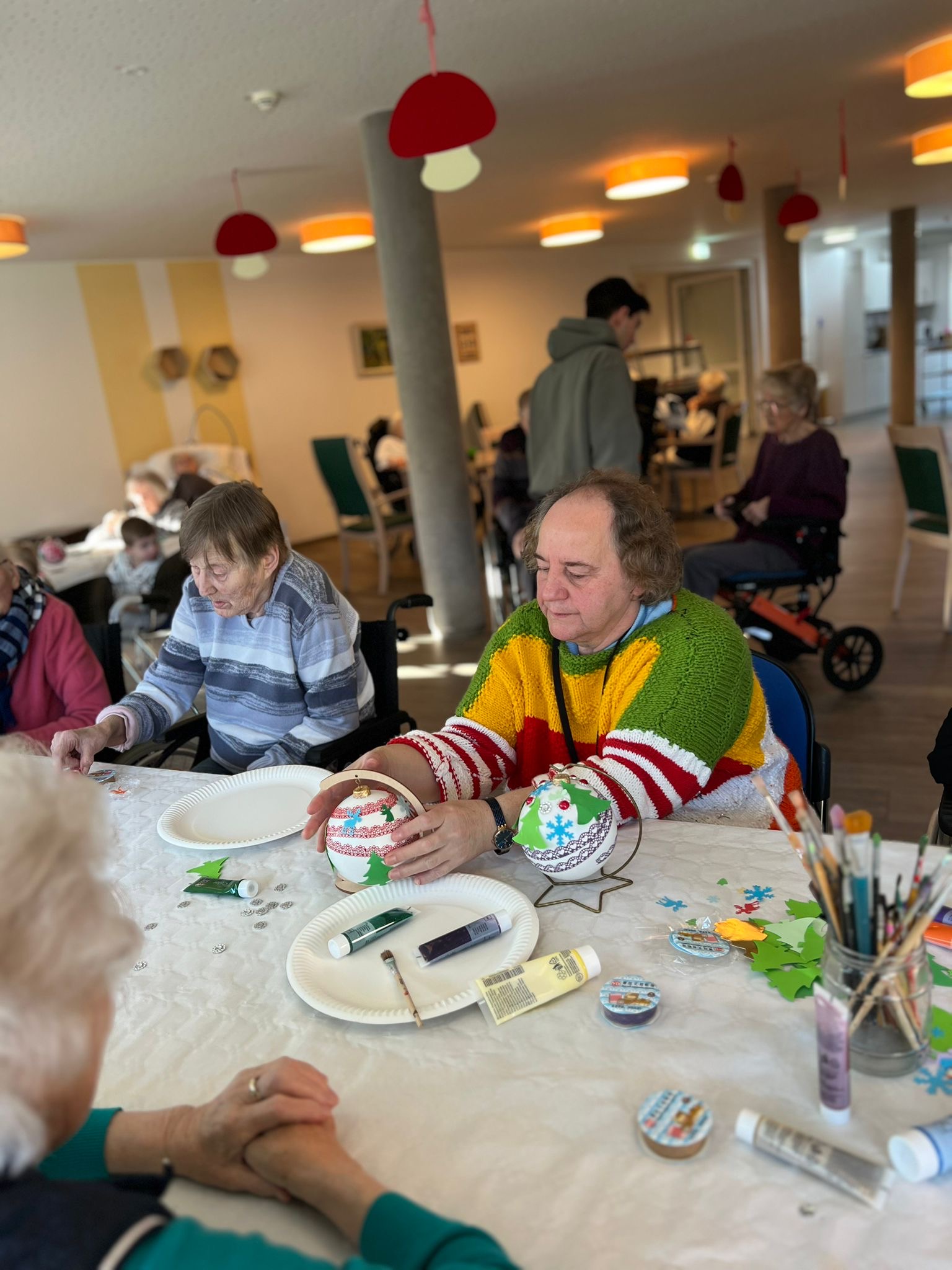 Gemeinsam mit unseren Bewohnern und Bewohnerinnen bastelten sie liebevolle Weihnachtsdekoration – zusammen gestalteten sie Christkugeln, bemalten sie bunt und schmückten sie mit funkelnden Glitzerperlen ✨…